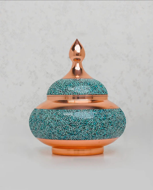 Firooze Koobi, or turquoise inlay, is one of Iran’s most exquisite and unique traditional crafts, blending the brilliance of turquoise stones with the elegance of metalwork. This art form, which originated in the Khorasan province of Iran, transforms ordinary objects into extraordinary works of art. With its shimmering turquoise inlays set against metals like copper, silver, and brass, Firooze Koobi is a symbol of luxury, craftsmanship, and cultural heritage.